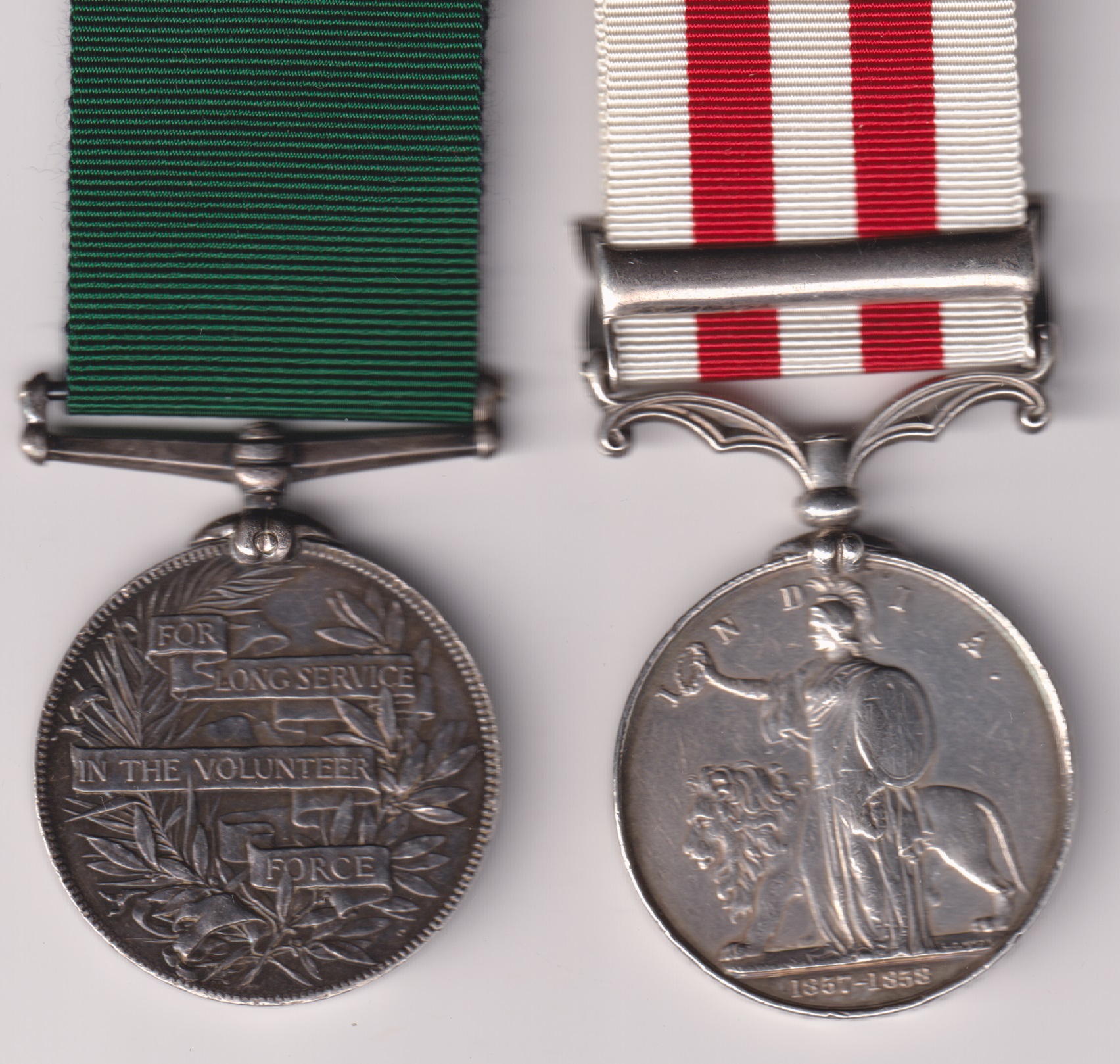 He was born in 1832, in Kenninghall, near Haling, Norfolk. He attested for the 52nd at Norwich on 25 July 1850, aged 18 years, and served for 21 years 3 days, with foreign service of 14 years 5 months. He was discharged at Chichester on 28 November 1871, aged 30 years and 4 months. He is entitled to the Indian Mutiny medal. He was promoted to Sergeant in May 1862, and to Colour-Sergeant in July 1866. He went to live in Taunton Somerset, and attended the 50th anniversary celebrations of the siege of Delhi in 1907. He is included in a group photograph of veterans published in the Regimental Chronicle. His pension was increased to 30d a day for service on the permanent staff of the ‘3/4 R.W. Sussex Regt.’ but entitlement to Volunteer L.S. & G.C. has not been confirmed. Sold with copied group photograph and discharge papers.